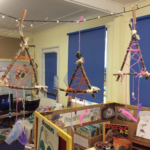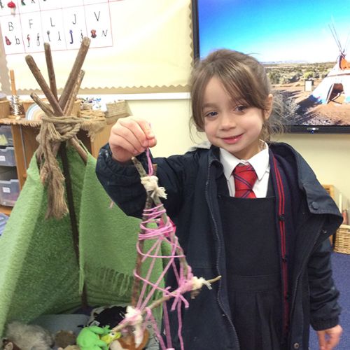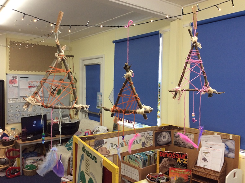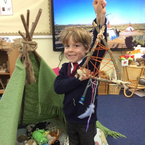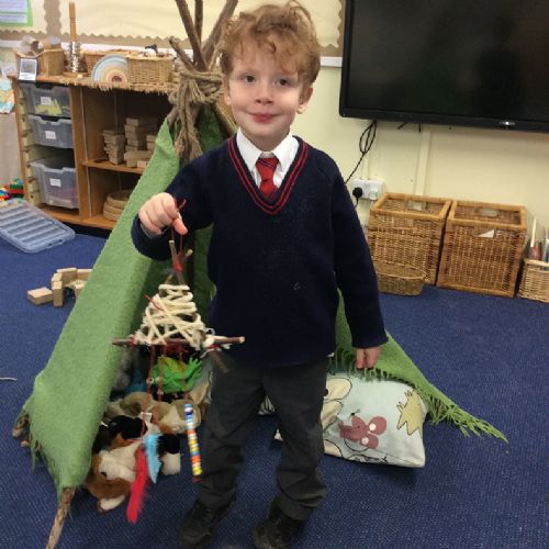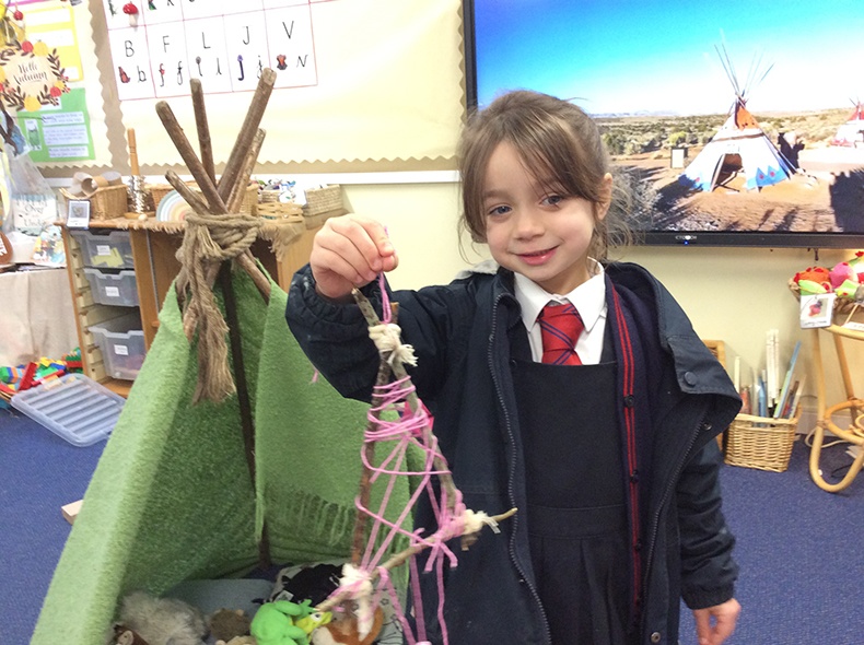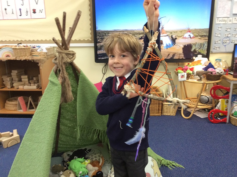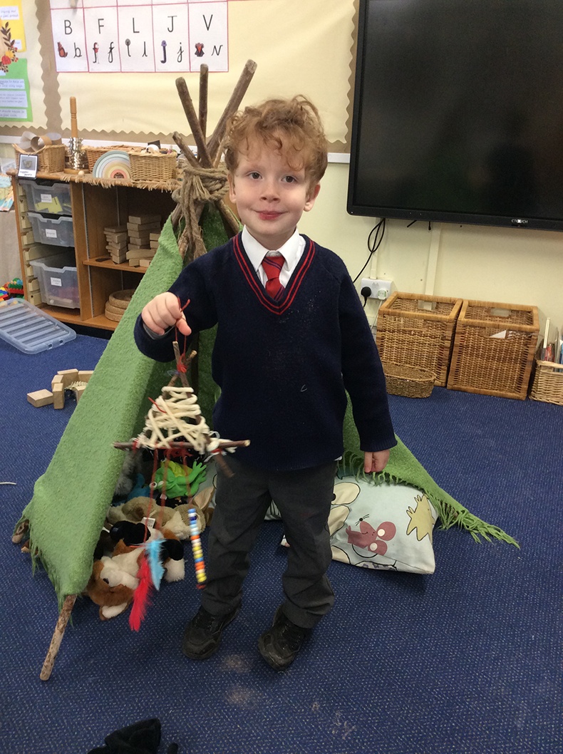 The children have been very created this week and, after learning about Native American culture, made their own dreamcatchers. We used sticks gathered from outside to create triangular frames and then joined them together using wool. The children were great at wrapping the wool around their frame to create the web and they added fathers and beads for extra decoration. We also had fun making a teepee on the carpet using our den building poles and blankets! Some children also made teepees using a paper template, cutting around the edges carefully and then folding to create a cone shape. We added art straws for extra stability.