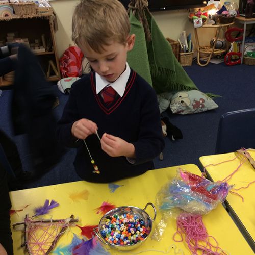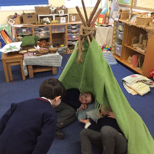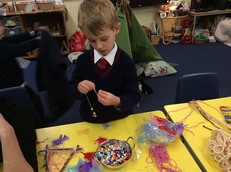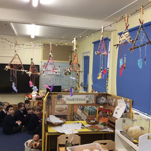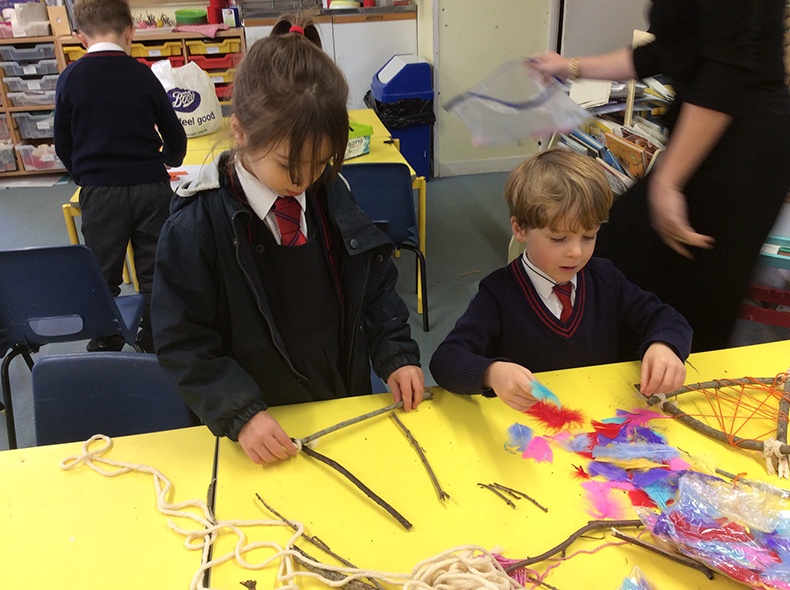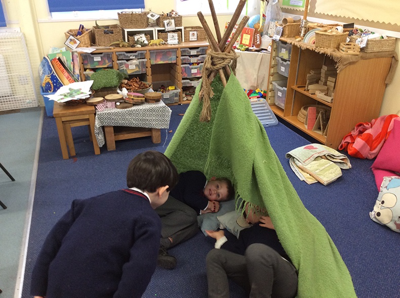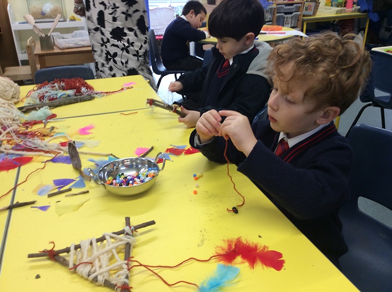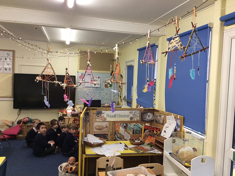 The children have been very created this week and, after learning about Native American culture, made their own dreamcatchers. We used sticks gathered from outside to create triangular frames and then joined them together using wool. The children were great at wrapping the wool around their frame to create the web and they added fathers and beads for extra decoration. We also had fun making a teepee on the carpet using our den building poles and blankets! Some children also made teepees using a paper template, cutting around the edges carefully and then folding to create a cone shape. We added art straws for extra stability.