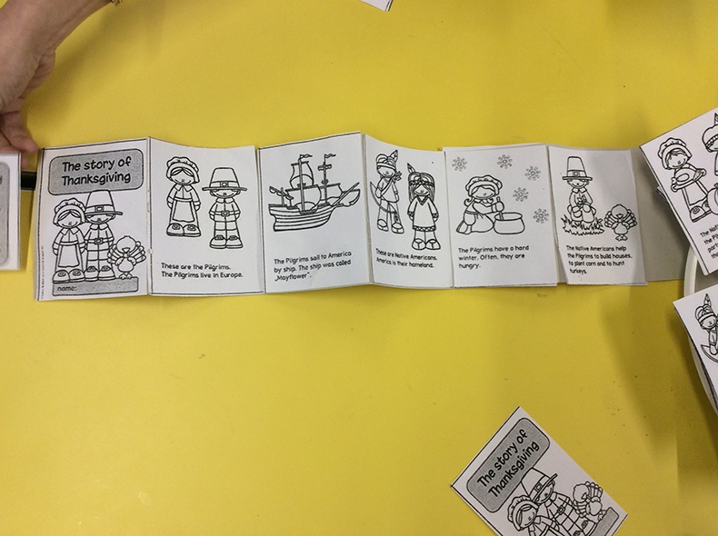 We have also made friendship bracelets to give to one another, as their friendships were something they were all thankful for. We sequenced the story of the first Thanksgiving and created little zig-zag books. The children were fantastic at retelling the events in the correct sequence and using some of the new vocabulary they had learned.