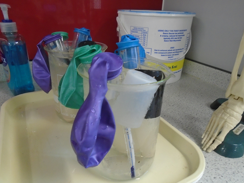 Form 6 has continued to work with yeast this week. This time they were investigating just how these fungi helped their bread to rise. They set up yeast and sugar solution at different temperatures and then used balloons to capture the carbon dioxide produced from the yeast respiring. The children learnt that if the yeast gets too hot it is killed, so no carbon dioxide is produced. They were also shown that the gas really was carbon dioxide. Mrs Carn slowly released the gas from the balloons so that it floated down to a candle and extinguished the flame. Birthday candles and balloons for two people today!