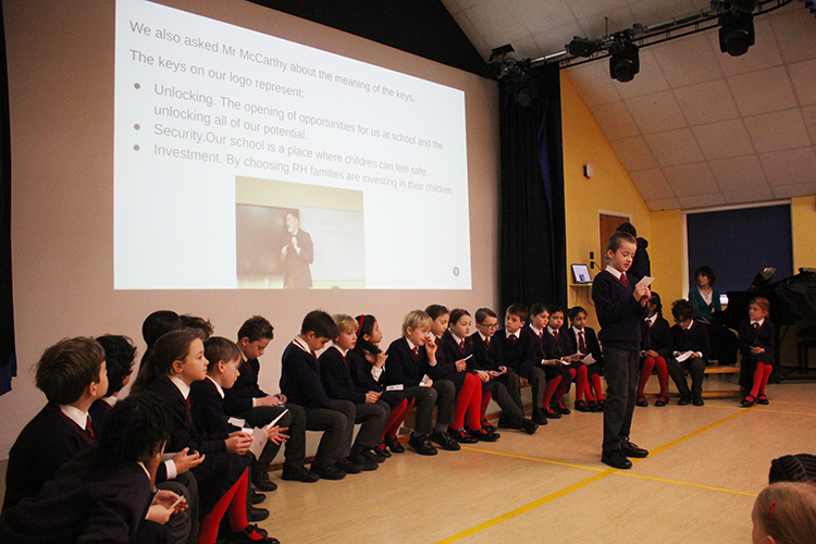 The focus of the assembly was on symbolism in humanism, and the children explained how humanists often use symbols to express shared values and meaning. They linked this to our own school identity by exploring the crossed key logo, reflecting on what it represents and how it connects to the school’s history and ethos. As part of their presentation, they shared information from their recent talk with Mr McCarthy, who had visited the class to explain the meaning and background of the school badge.