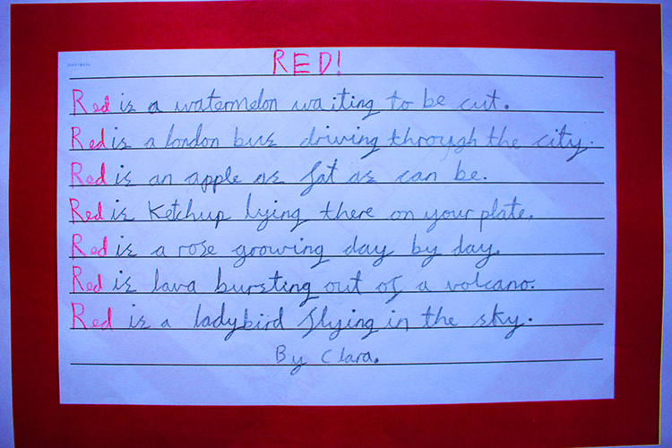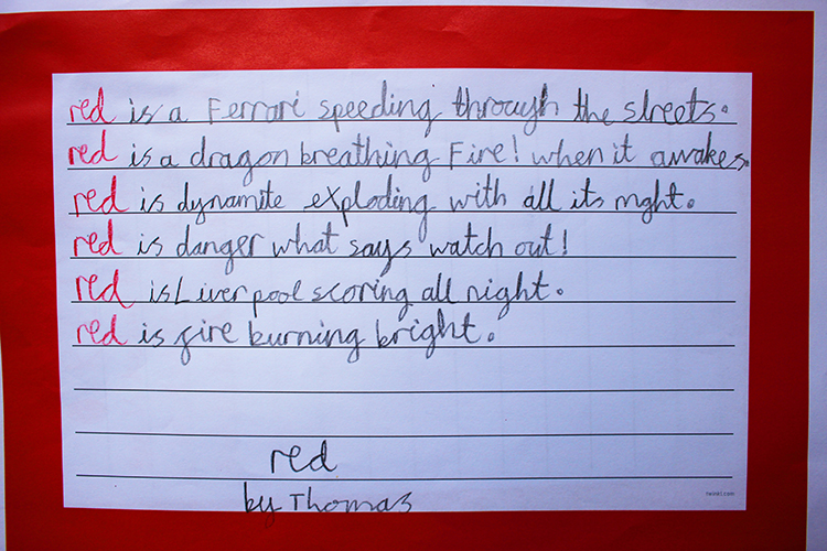 The children wrote some excellent poems about what they think red represents. They used the poem, What is Red by Mary O'Neill, for inspiration and came up with lots of wonderful ideas.
