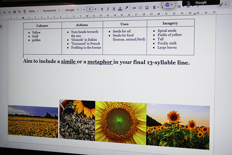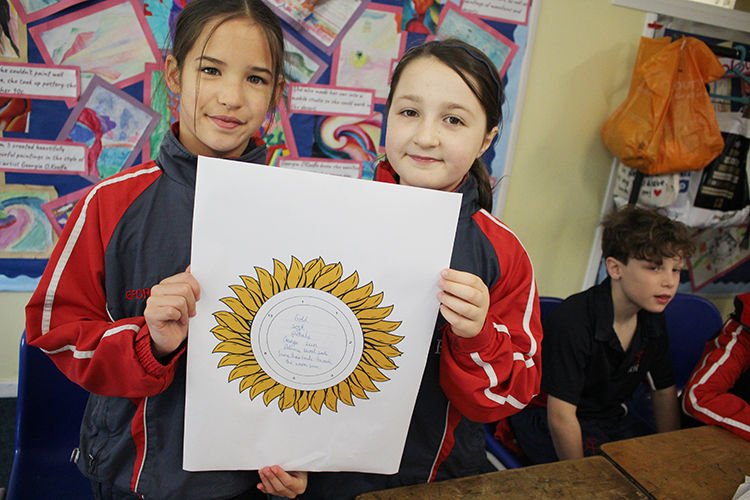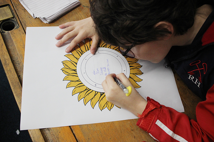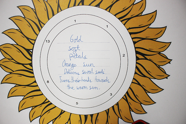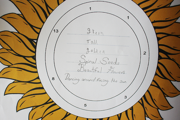 As part of Science Week and on the theme of yellow, Form 5 have been learning about the Fibonacci sequence in their maths and English lessons. Beginning by spotting patterns in the sequence, which allowed them to calculate further terms, the children used their numbers to draw spirals. These spirals were likened to naturally occurring spirals in nature, such as in the layout of the seeds in a sunflower, the positioning of the scales on a pine cone and the shape of a snail shell, which all use the intervals of the Fibonacci sequence. This work was then transferred into English lessons, where the class were tasked with creating a poem about sunflowers. The terms of the Fibonacci sequence dictated how many syllables the children were allowed to use on each line. This creative activity sparked a lot of interest and the boys and girls enjoyed trying to adapt their descriptive phrases to the rules of the poem.
