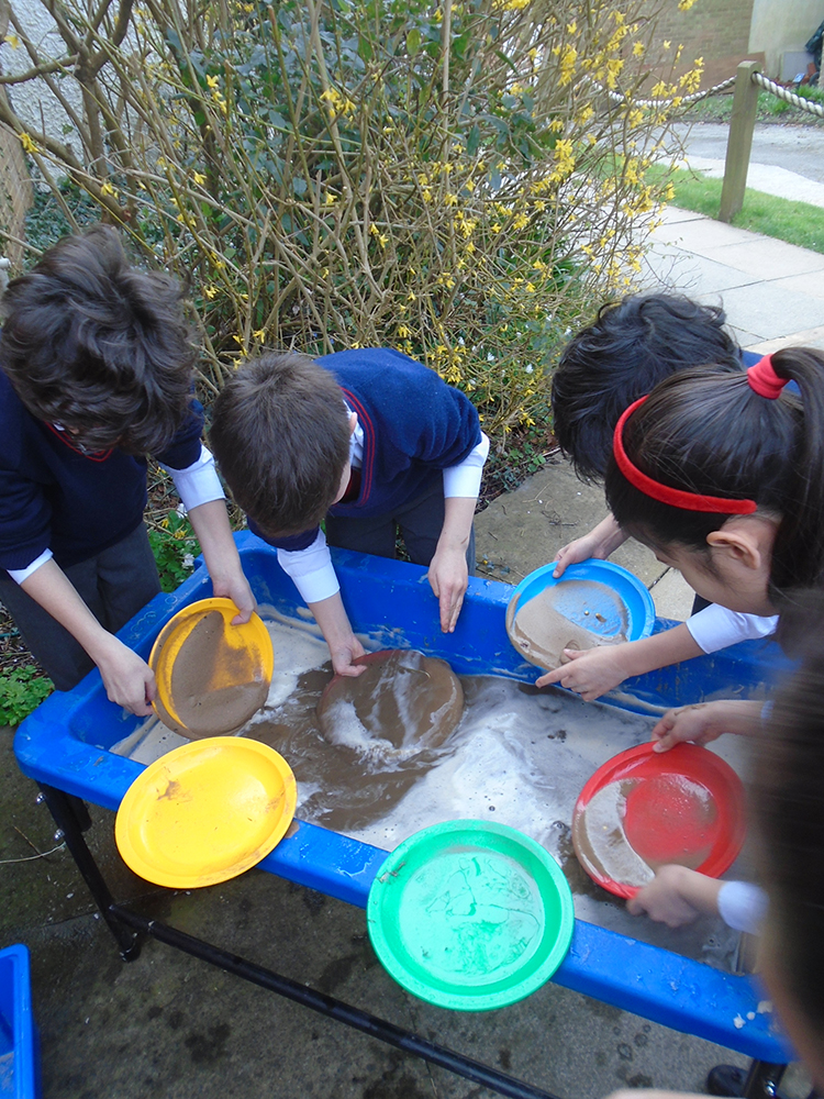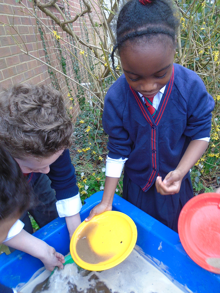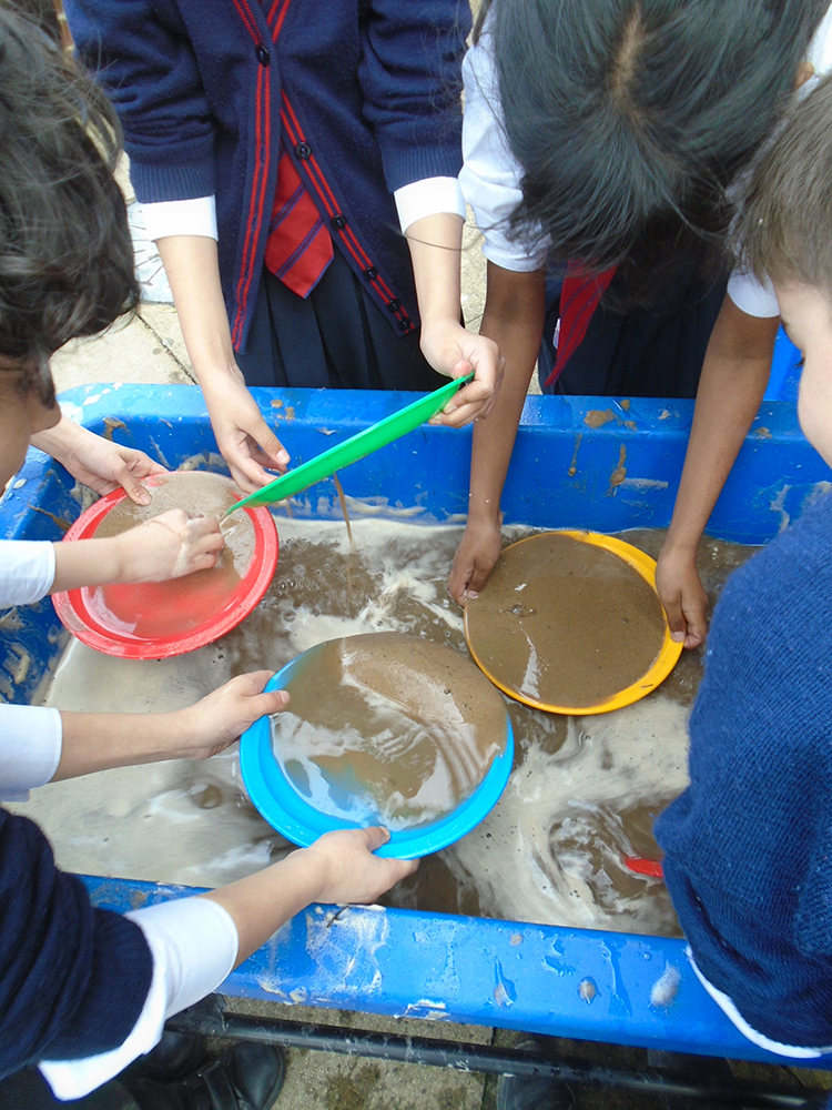Moving from yellow to other golden hues, Form 5 explored the question: What makes gold so valuable? In their humanities lesson, pupils learned about the Gold Rush and why people travelled across the world hoping to find gold. They then carried out their own gold panning investigation using trays of sand and water. By swirling the sand carefully, pupils discovered how heavier gold pieces sink to the bottom. This helped them understand the scientific idea of density and why gold can be found in riverbeds. The activity helped pupils connect the science of materials with the history of the Gold Rush.