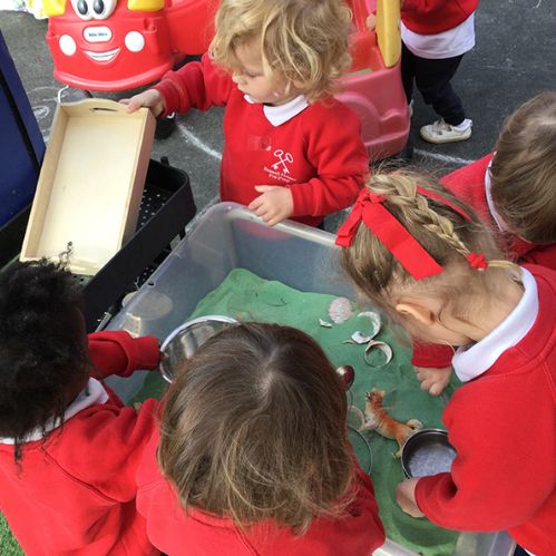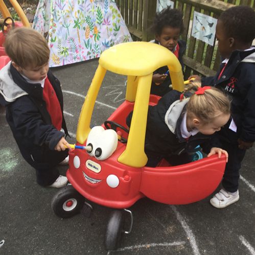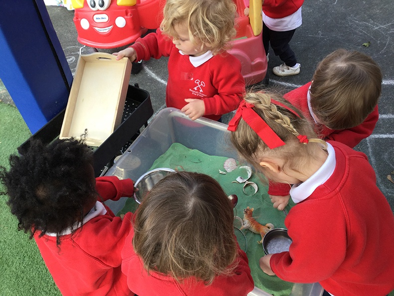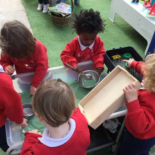 As part of this week’s topic, the children enjoyed adding powder paint to water. Cornflour was then added to thicken the liquid. Paint brushes were used to make patterns and there was lots of swirling and mark-making.