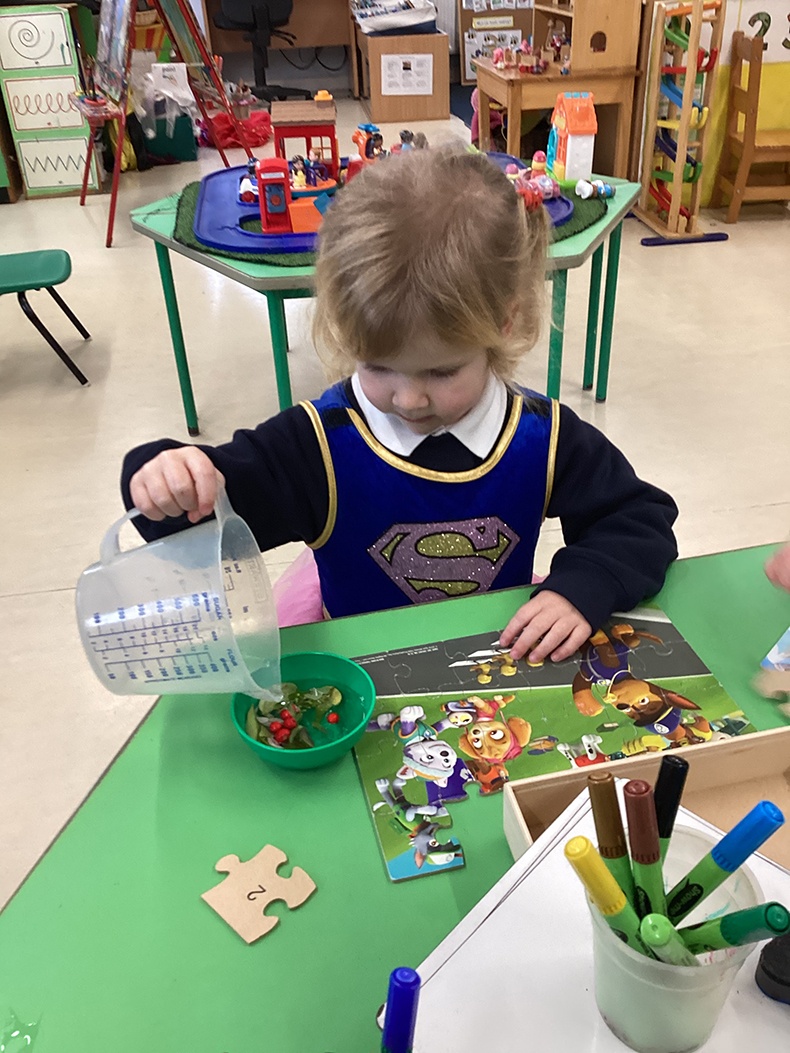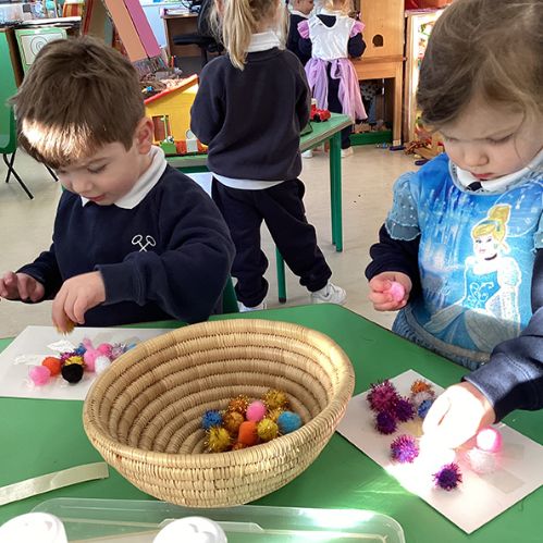 The children have all settled into the new term happily in Nursery showing confidence to try new activities and to recall more familiar ones such as our fun music lessons with Miss Norford. We have been singing lots of the children’s favourite songs from the Pre-Prep Song Box including Wind the Bobbin Up, Five Little Monkeys, Snap Dragon and Jingle Bells! They have also been listening to different tempos to play musical statues and exploring the sounds of the claves and tambourines to make musical patterns.